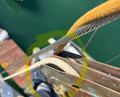 Picture left : shows the offending item, the sheaves on the fractional rig with head sail halyard one side and a 'mouse' line the other.